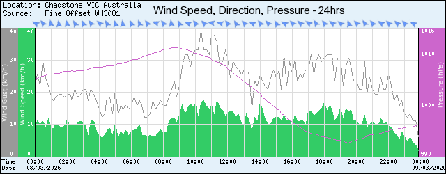 | Time | Temp | Hum | DP | Wind | Gust | Dir | Rain >9am | Press |
