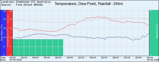| 19:20 | 18.1 | 59 | 10.0 | 1.8 | 6.1 | ESE | 0.0 | 1006.0 |