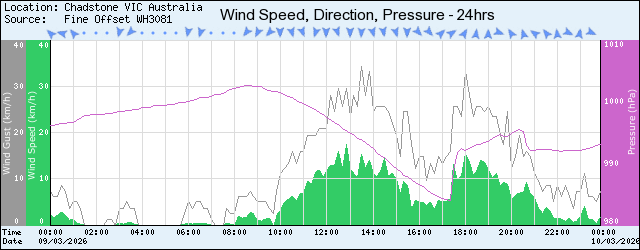 | Time | Temp | Hum | DP | Wind | Gust | Dir | Rain >9am | Press |