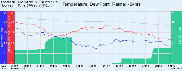 | 22:40 | 12.0 | 89 | 10.2 | 11.4 | 28.1 | WNW | 4.5 | 1008.6 |