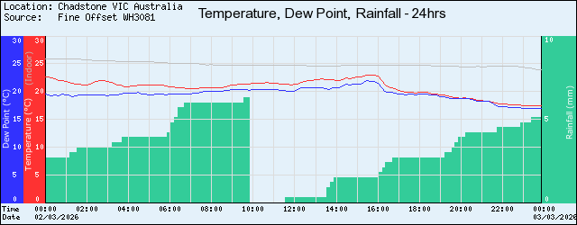 | 02:30 | 21.8 | 86 | 19.4 | 13.2 | 25.6 | N | 3.3 | 985.2 |