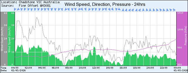 | Time | Temp | Hum | DP | Wind | Gust | Dir | Rain >9am | Press |