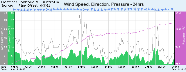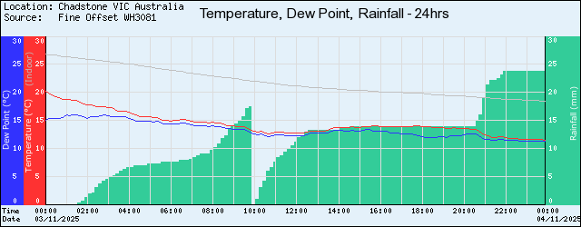 | 23:30 | 11.6 | 98 | 11.3 | 0.8 | 6.1 | N | 23.7 | 1003.4 |
