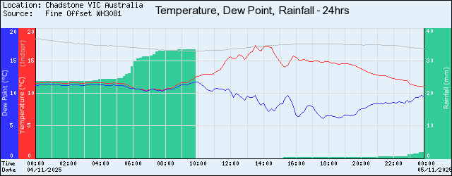 | 05:40 | 11.3 | 98 | 11.0 | 4.4 | 9.7 | NW | 25.8 | 1005.2 |