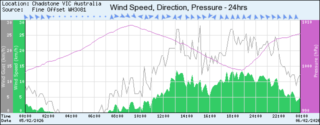 | 08:30 | 18.2 | 85 | 15.6 | 2.1 | 11.2 | WNW | 0.0 | 1008.4 |