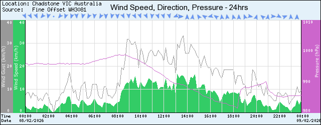 | Time | Temp | Hum | DP | Wind | Gust | Dir | Rain >9am | Press |
