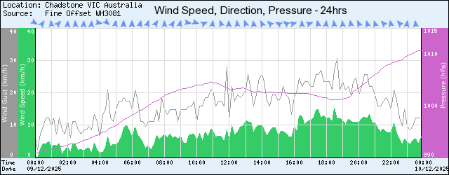 | Time | Temp | Hum | DP | Wind | Gust | Dir | Rain >9am | Press |