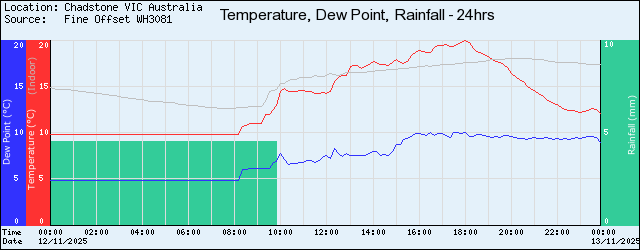 | 23:00 | 12.2 | 83 | 9.4 | 0.4 | 3.6 | NNW | 0.0 | 1010.8 |