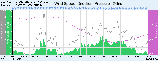 | 21:10 | 16.6 | 74 | 12.0 | 5.9 | 11.2 | WSW | 0.0 | 990.6 |