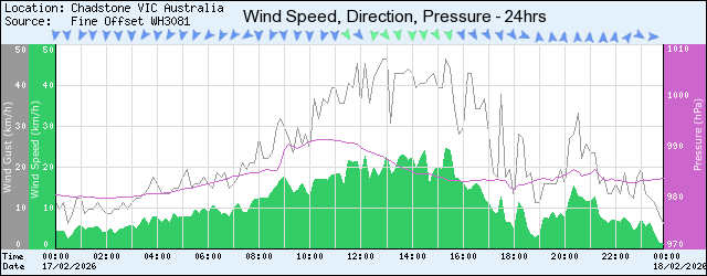 | 22:40 | 18.5 | 94 | 17.5 | 4.2 | 12.2 | WNW | 1.2 | 982.9 |