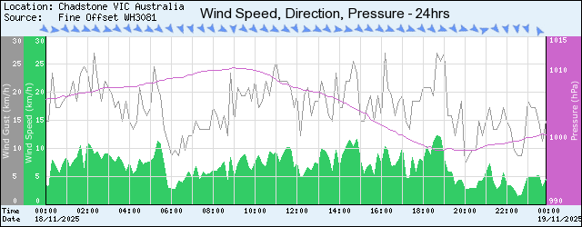 | 11:00 | 17.7 | 66 | 11.3 | 9.4 | 25.6 | WNW | 0.0 | 1008.6 |