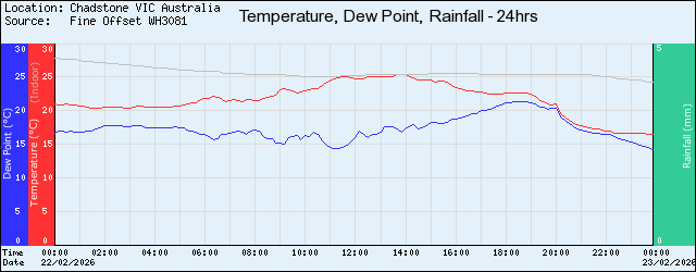 | 21:30 | 17.3 | 96 | 16.7 | 13.5 | 24.5 | SW | 0.0 | 987.2 |