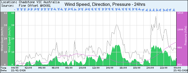 | 09:00 | 23.1 | 61 | 15.2 | 3.1 | 11.2 | WNW | 0.0 | 986.6 |