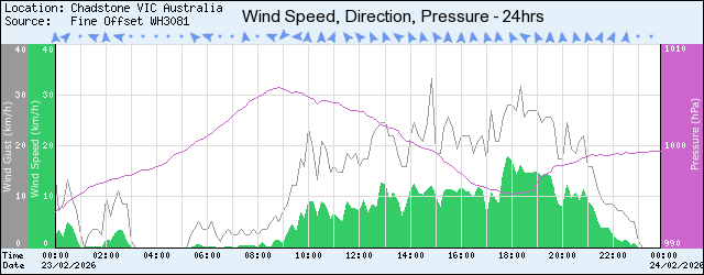 | 23:00 | 17.3 | 72 | 12.2 | 0.0 | 1.1 | NW | 0.0 | 999.4 |