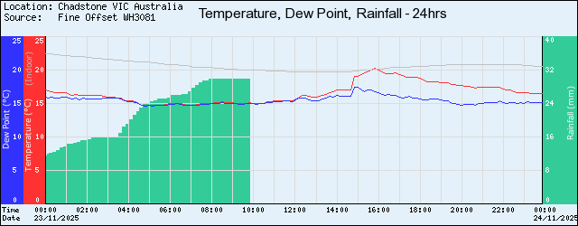 | 23:40 | 16.4 | 92 | 15.1 | 3.9 | 11.2 | SE | 0.0 | 1000.2 |