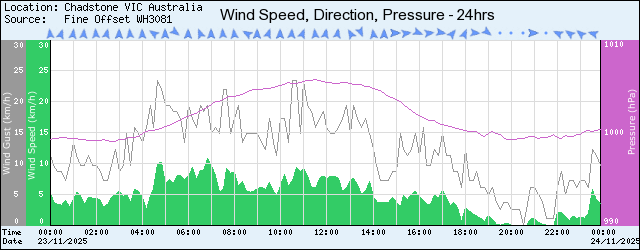 | 23:10 | 16.5 | 92 | 15.2 | 1.0 | 7.2 | ESE | 0.0 | 1000.1 |