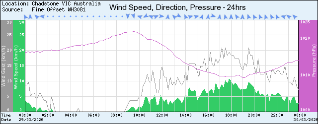 | Time | Temp | Hum | DP | Wind | Gust | Dir | Rain >9am | Press |