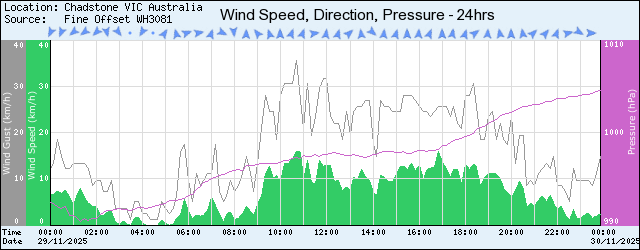 | Time | Temp | Hum | DP | Wind | Gust | Dir | Rain >9am | Press |