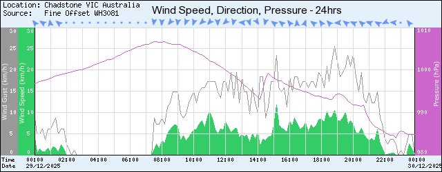 | 00:30 | 19.3 | 64 | 12.3 | 0.7 | 6.1 | ESE | 0.0 | 997.5 |