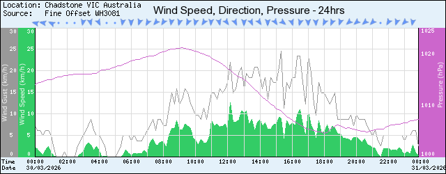 | Time | Temp | Hum | DP | Wind | Gust | Dir | Rain >9am | Press |