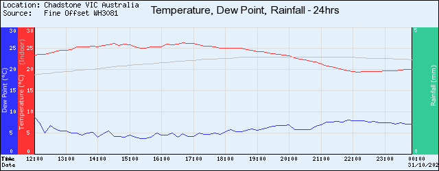 | 19:20 | 24.0 | 32 | 6.3 | 5.9 | 12.2 | NNE | 0.0 | 999.9 |
