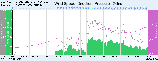 | Time | Temp | Hum | DP | Wind | Gust | Dir | Rain >9am | Press |