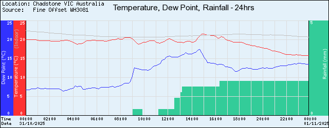 | 05:10 | 19.6 | 44 | 7.0 | 6.2 | 19.4 | NNE | 0.0 | 1003.8 |